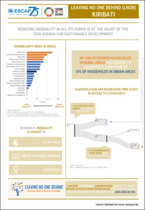 Leaving No One Behind (LNOB) tool helps discover how different circumstances interact to create unequal access to basic opportunities in Asia and the Pacific. The LNOB country brief for Kiribati provides insights into which groups are further ahead and further behind in various SDG indicators and where the biggest gaps are found in terms of access to opportunities or prevalence of barriers between the furthest behind and the furthest ahead groups in Kiribati.
