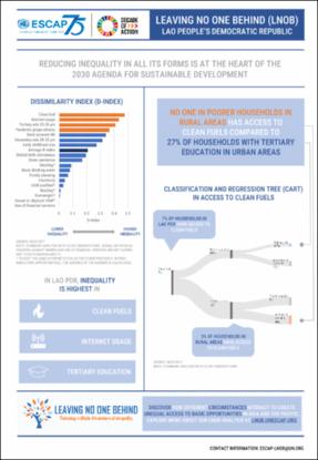 Leaving No One Behind (LNOB) tool helps discover how different circumstances interact to create unequal access to basic opportunities in Asia and the Pacific. The LNOB country brief for Lao People's Democratic Republic provides insights into which groups are further ahead and further behind in various SDG indicators and where the biggest gaps are found in terms of access to opportunities or prevalence of barriers between the furthest behind and the furthest ahead groups in Lao People's Democratic Republic.