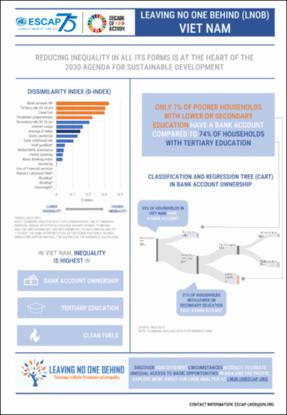 Leaving No One Behind (LNOB) tool helps discover how different circumstances interact to create unequal access to basic opportunities in Asia and the Pacific. The LNOB country brief for Viet Nam provides insights into which groups are further ahead and further behind in various SDG indicators and where the biggest gaps are found in terms of access to opportunities or prevalence of barriers between the furthest behind and the furthest ahead groups in Viet Nam.