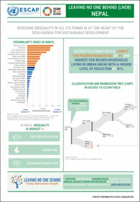 Leaving No One Behind (LNOB) tool helps discover how different circumstances interact to create unequal access to basic opportunities in Asia and the Pacific. The LNOB country brief for Fiji provides insights into which groups are further ahead and further behind in various SDG indicators and where the biggest gaps are found in terms of access to opportunities or prevalence of barriers between the furthest behind and the furthest ahead groups in Nepal.