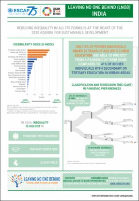 Leaving No One Behind (LNOB) tool helps discover how different circumstances interact to create unequal access to basic opportunities in Asia and the Pacific. The LNOB country brief for India provides insights into which groups are further ahead and further behind in various SDG indicators and where the biggest gaps are found in terms of access to opportunities or prevalence of barriers between the furthest behind and the furthest ahead groups in India.